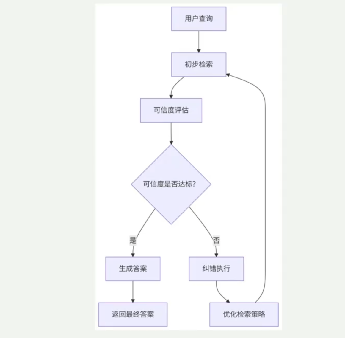 核心思路:对检索结果进行可信度评估、动态筛选与主动修正,它不依赖于原始检索内容生成答案,还能:识别不可靠信息(如错误事实、过时数据)、主动触发纠错机制(如二次检索或知识修正)、基于修正后的上下文生成高准确性答案。