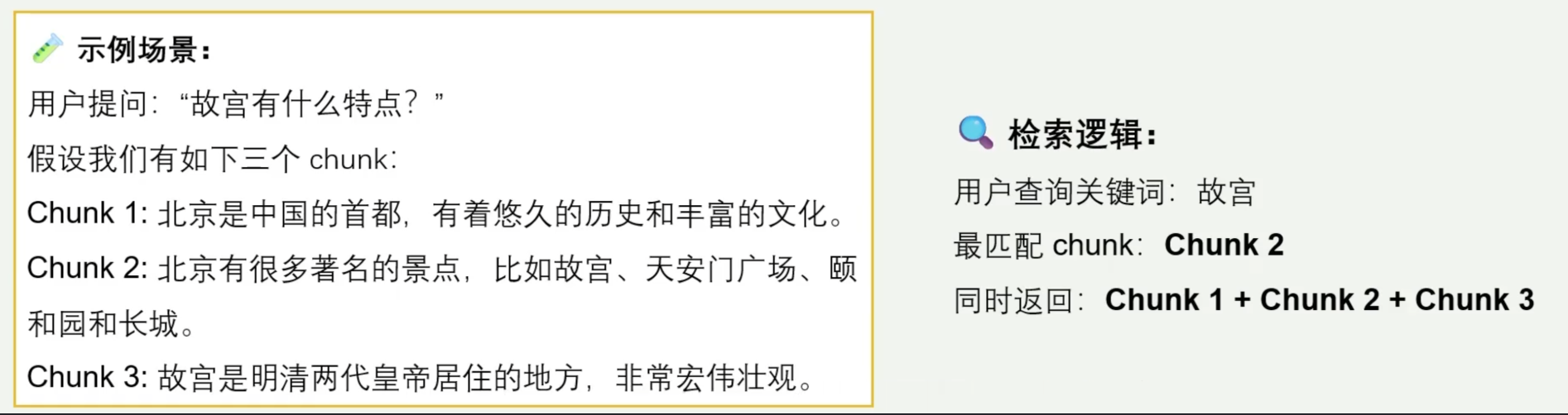 核心思路:在检索时引入更多上下文信息,提升 chunk 的相关性。 在检索过程中,除了返回最匹配的Chunk,还同时返回其前后的相邻chunk,以提供更丰富的上下文信息。