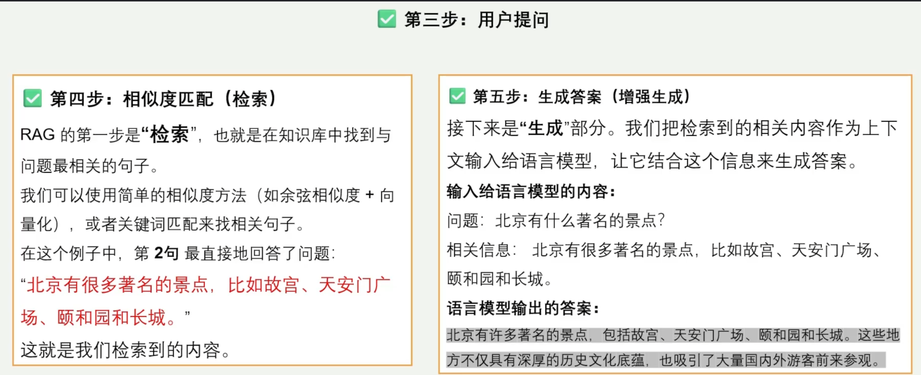 答案生成:大模型基于Prompt中的上下文信息,生成准确的回答并输出。
